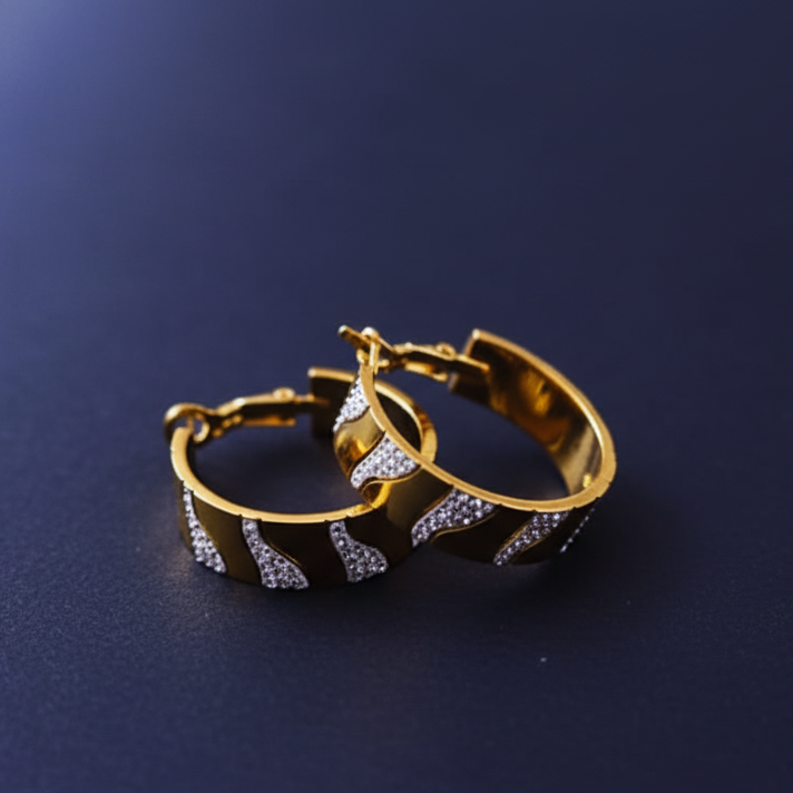 Add a touch of contemporary luxury to your jewellery collection with these exquisite Gold-Plated Hoop Earrings. Featuring a striking cut-out pattern accented with brilliant Cubic Zirconia (CZ) diamonds, these hoops are the perfect accessory for both everyday chic and evening glamour.