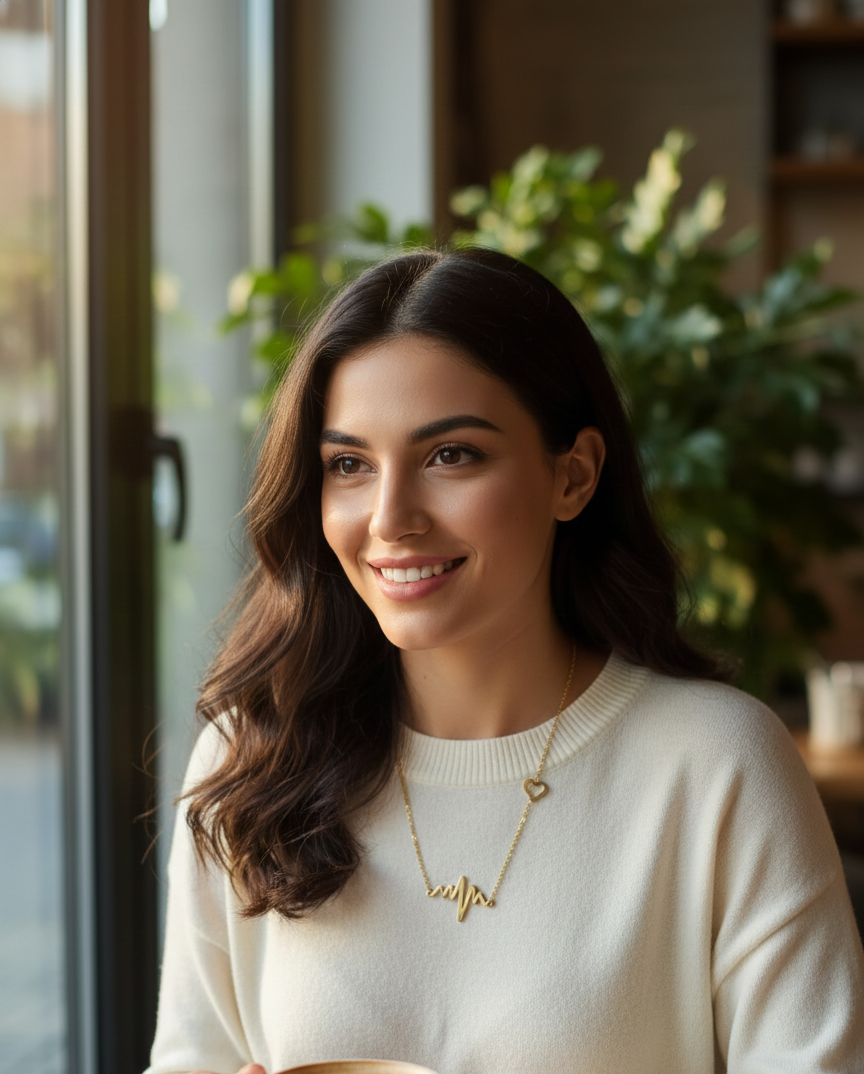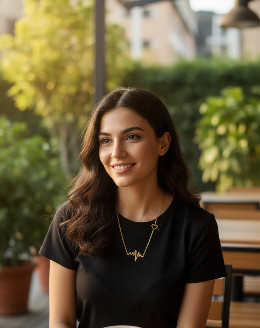 Minimal yet meaningful, this gold-tone heartbeat charm bracelet features a delicate chain with a sleek heartbeat motif and a tiny heart charm. Symbolising love, life, and connection, it’s a graceful piece perfect for everyday wear or thoughtful gifting.