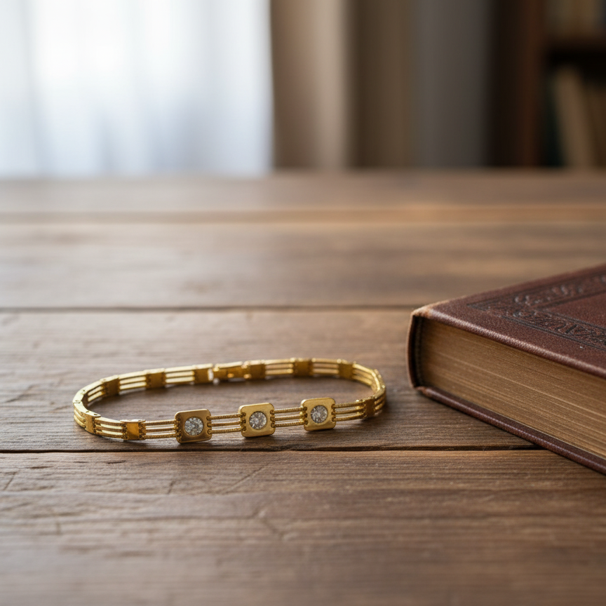 Add a touch of contemporary glamour with this Elegant Gold-Tone Link Bracelet. Featuring a sleek, multi-strand band highlighted by three striking square links, each set with a brilliant white stone (Cubic Zirconia), this piece is perfect for layering or wearing solo. Its refined design makes it an ideal accessory for both daily sophistication and evening events.